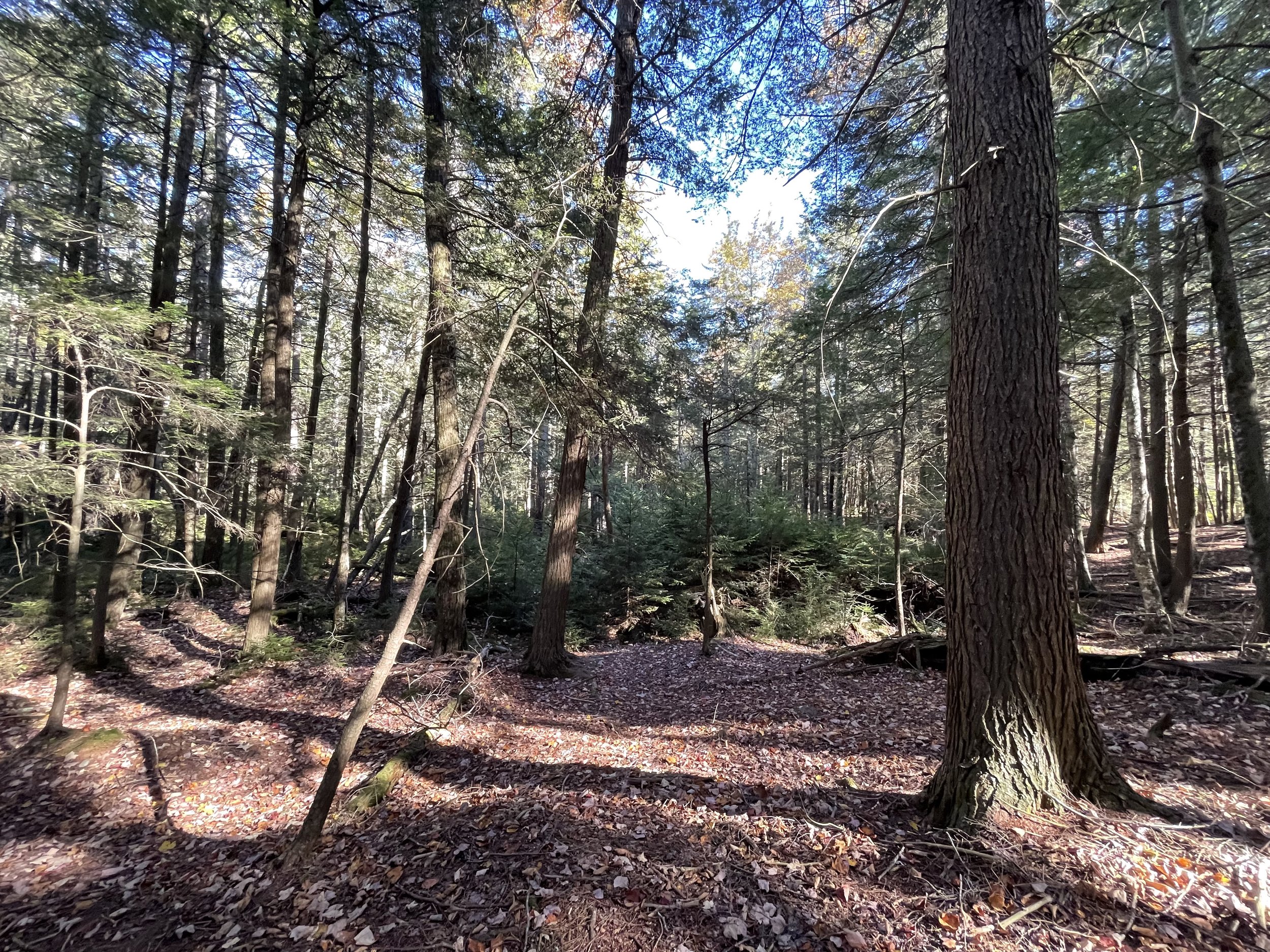 Eastern hemlock is a defining tree of the Northeast. On slopes and along mountain streams, hemlocks cast deep shade with dense, feathered foliage, creating a unique climate in the forest. During the nineteenth century, tannin-rich hemlock bark became a prime resource for processing animal hides into leather. The abundance of this tree in the Catskills and Hudson Valley made the region a center of the tanning industry. Tanneries were constructed in nearly every valley. They drove the development of towns, villages and hamlets as the surrounding forests were denuded. Overharvest nearly obliterated the species, deeply altering the ecosystem.
