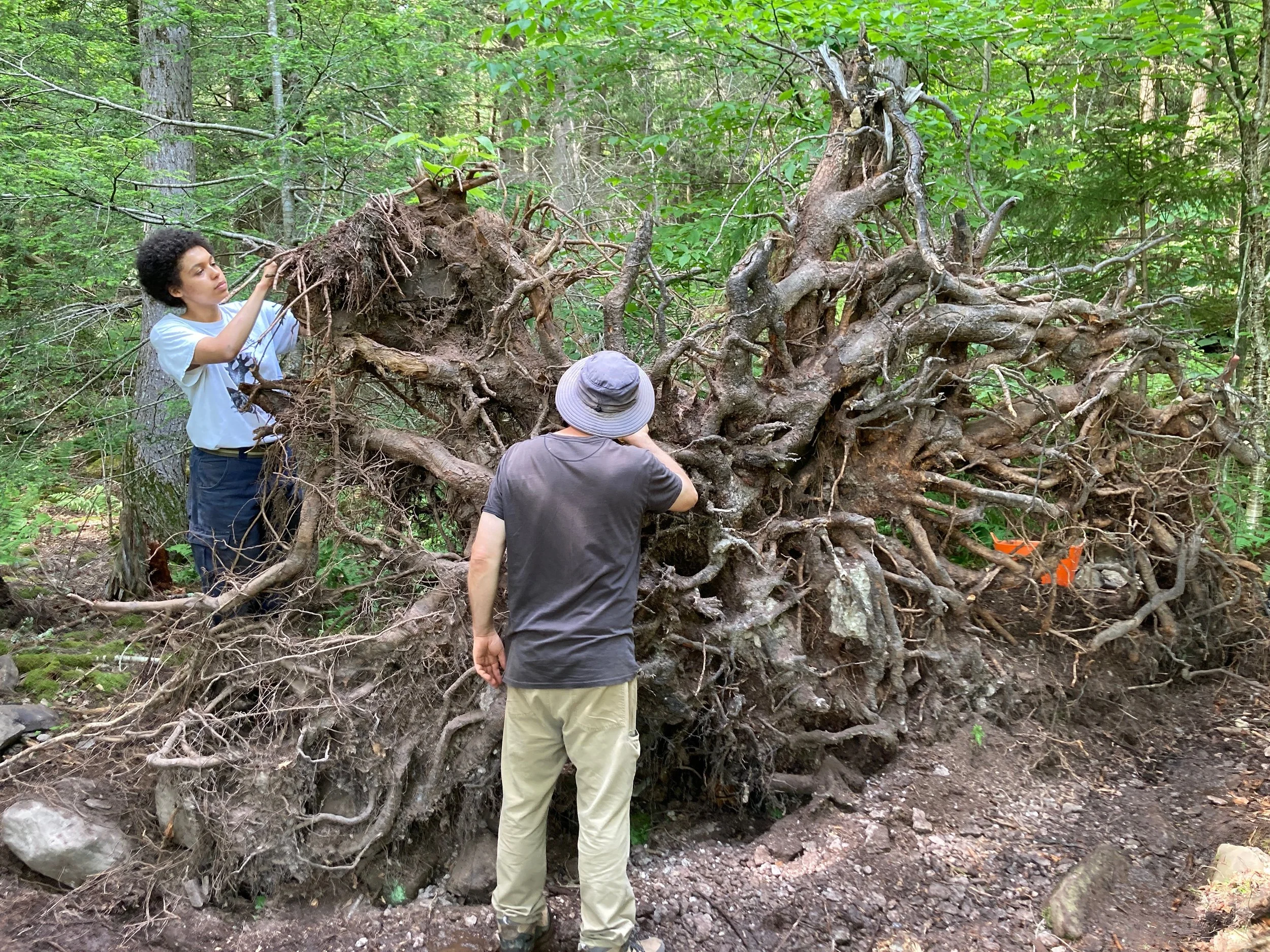 We were invited to participate in an art event called The Longest Day by Alexander Lyle. We had visited Alex’s property in Haines Falls (about 15 minutes from Mountain Top) to look at a large Eastern hemlock that had fallen and left its impressive root mass exposed beside the road. As our first foray into exploring hemlock collapse, we decided to excavate the roots of this tree.
