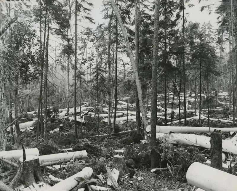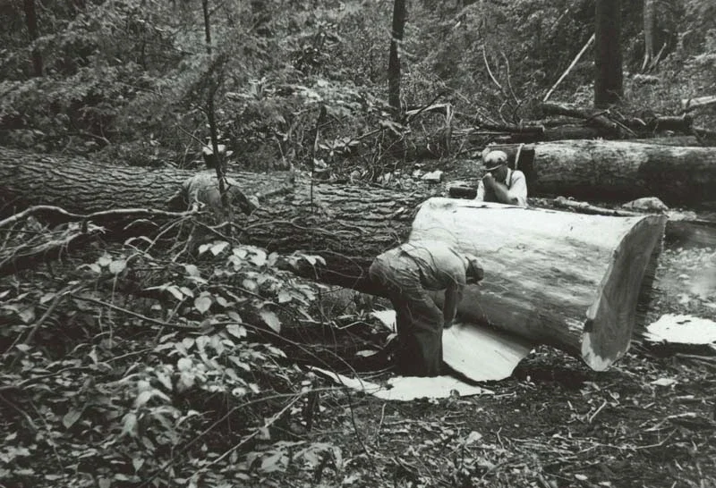 Hemlocks were abundant on slopes and along mountain brooks across the Catskills. Bark-peeling crews felled these trees to strip their bark, or girdled them standing, usually leaving the wood to rot. This went on for decades, denuding stand after stand of hemlock and causing fundamental changes to the ecosystem. The extraction led to erosion, warming streams, and most notably, the replacement of Eastern hemlocks in many places with fast-growing hardwood trees. By the end of the 19th century, the industry was coming to a halt as resources dwindled drastically. This was a regional near-obliteration of a species.