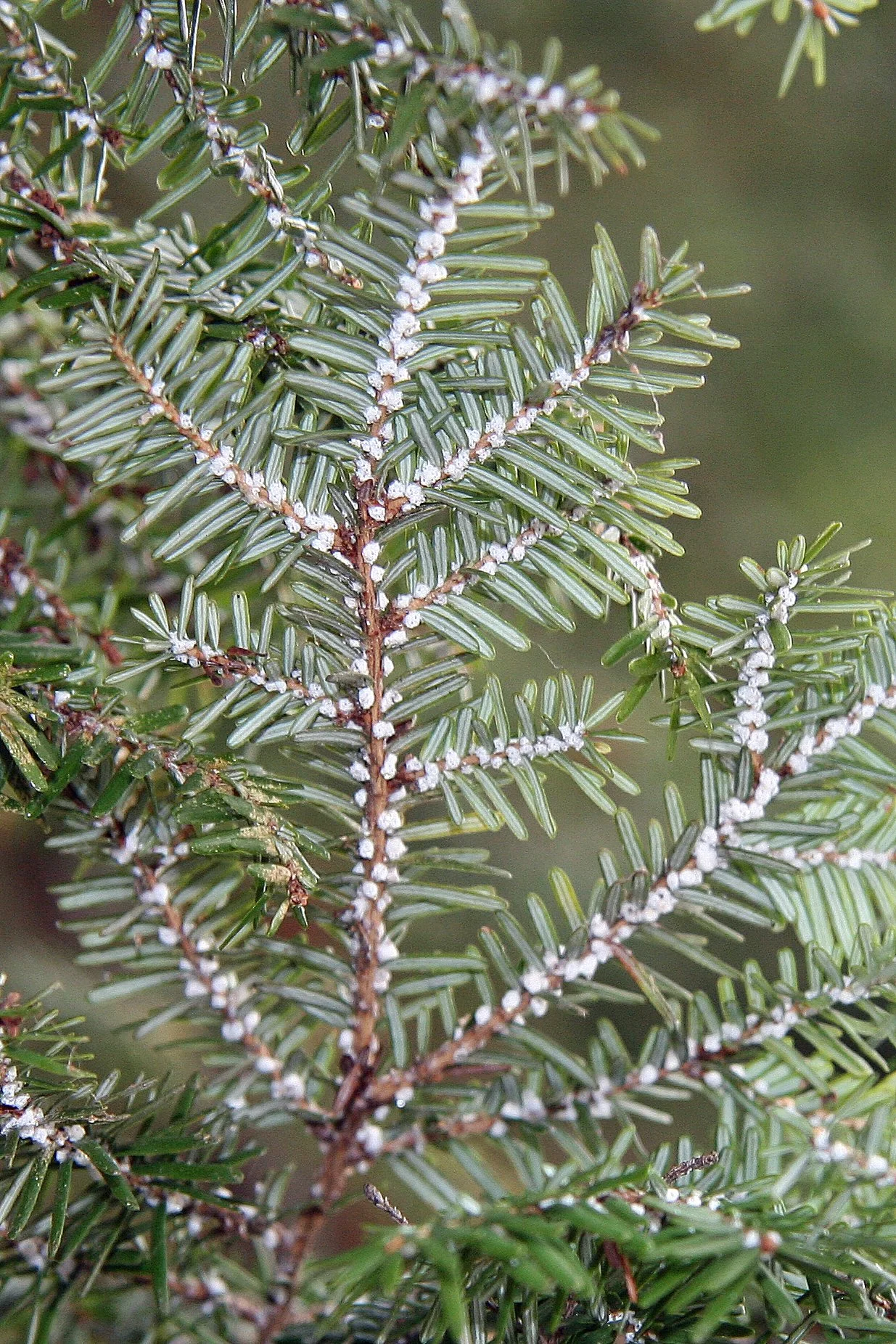 Eastern hemlock already has a major place in Tannersville’s history. Its significance as a resource, and the impact of its extraction on local industry has been well-documented. As forest preservation permitted the slow regrowth and return of hemlock throughout the 1900s, second-growth stands have established around Greene County. However, the species faces an existential threat today. An imported insect, hemlock woolly adelgid (HWA) is bringing on the mass mortality of Eastern hemlock throughout its range. In the lower and mid-Hudson Valley it has already killed innumerable trees, upending habitat once again.