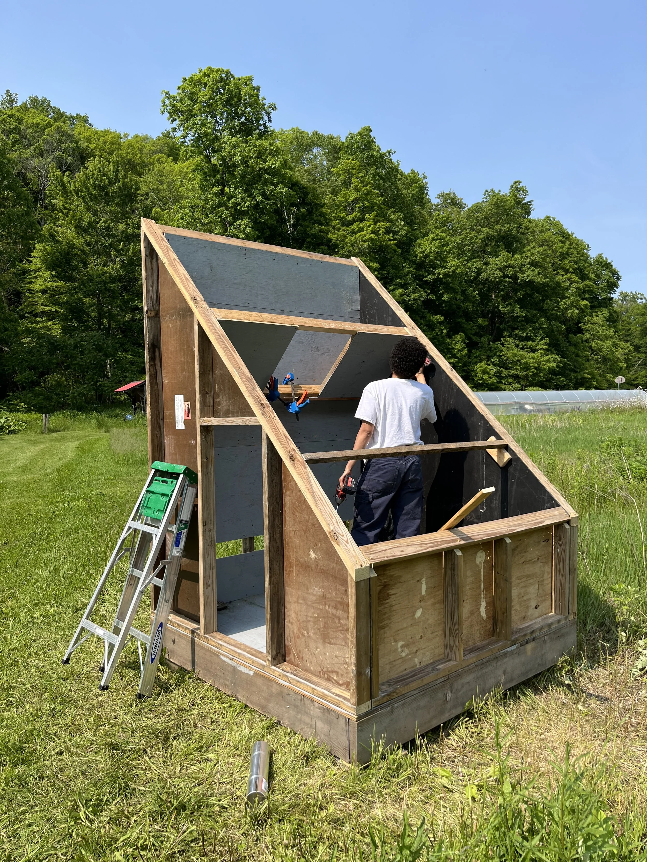 In order to bring the moisture content of the wood down to an appropriate percentage, we need to dry it in a controlled environment. This project prompted us to construct a solar kiln for our self-milled lumber.